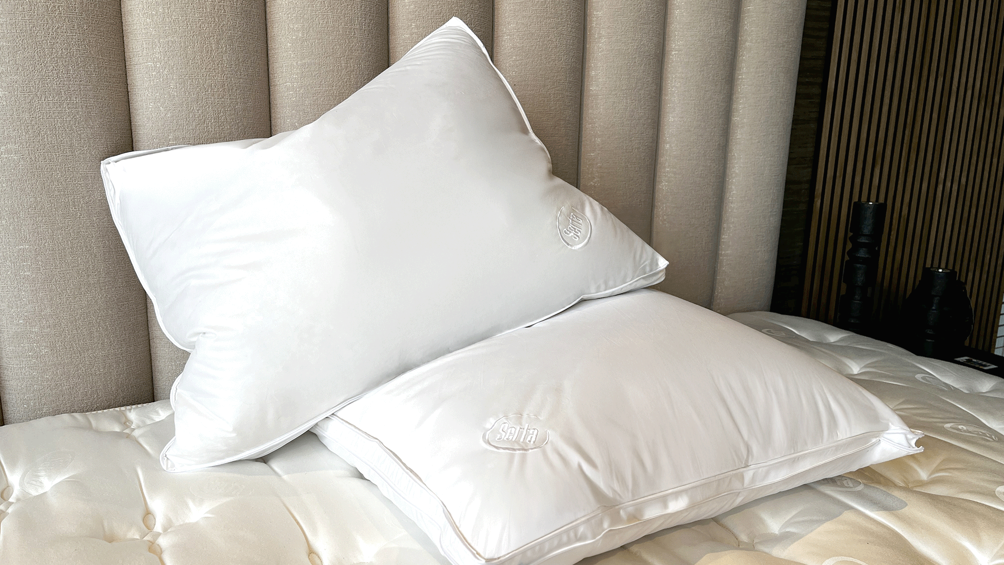 Ervaar ultiem slaapcomfort met Serta hoofdkussens Serta hoofdkussens zijn er in soft, medium en firm. Gemaakt van 100% witte ganzendons en ganzenveertjes, afgewerkt met fijn mako-katoen en een satijnen bies.