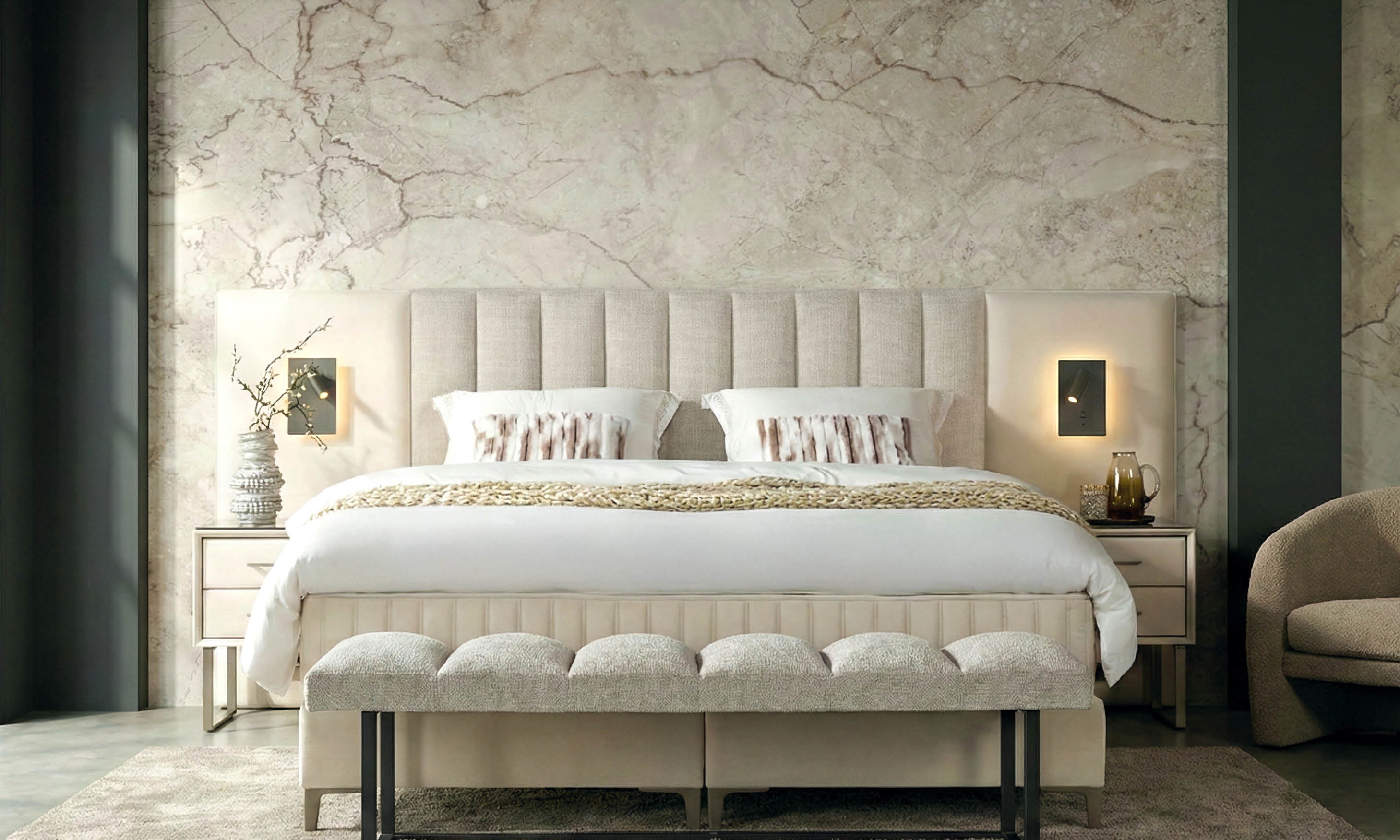 De slaapkamer heeft geen geheimen voor ons. Als een van de grootste merken ter wereld in matrassen en bosprings, zijn we gespecialiseerd in de inrichting van slaapkamers en suites.