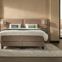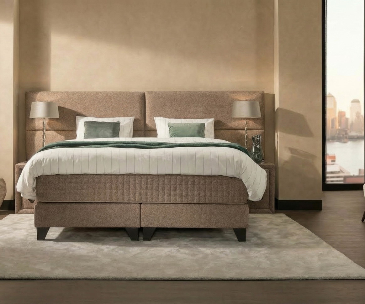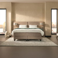 Het Hotelbed van het jaar is speciaal samengesteld en bevat extra upgrades: luxe stoffering in Boston Cement, het Royalty-matras en een verkoelende Gelfoam-topmatras. Deze set samengesteld op basis van inzichten uit de wereld van luxe hotellerie. Afgestemd op wat hotelgasten écht waarderen. Bekijk de pagina van dit model voor alle details: serta.nl/boxsprings/premium-series/hotelbed-van-het-jaar-magnifique