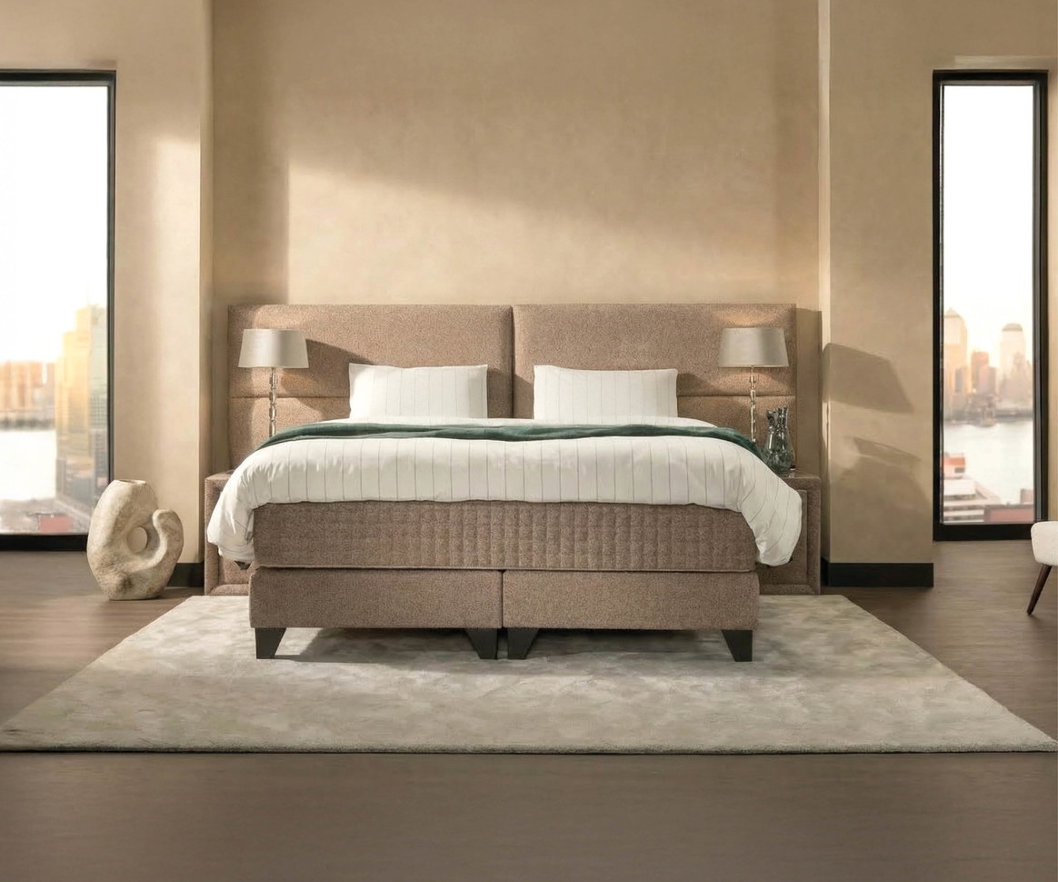 Deze boxspring is standaard voorzien van het Royalty matras. Dit bijzondere matras ademt de Amerikaanse oorsprong en is opgebouwd met een dubbele laag 7-zone pocketveren. Dit unieke veersysteem combineert het beste van twee werelden. De eerste laag pocketveren zorgt voor een progressieve ondersteuning, de tweede laag pocketveren vormen zich naar de contouren van het lichaam. Dankzij het Double Side Core System vind je de stevigheid die je zoekt, medium en/of firm, in een enkele matraskern.