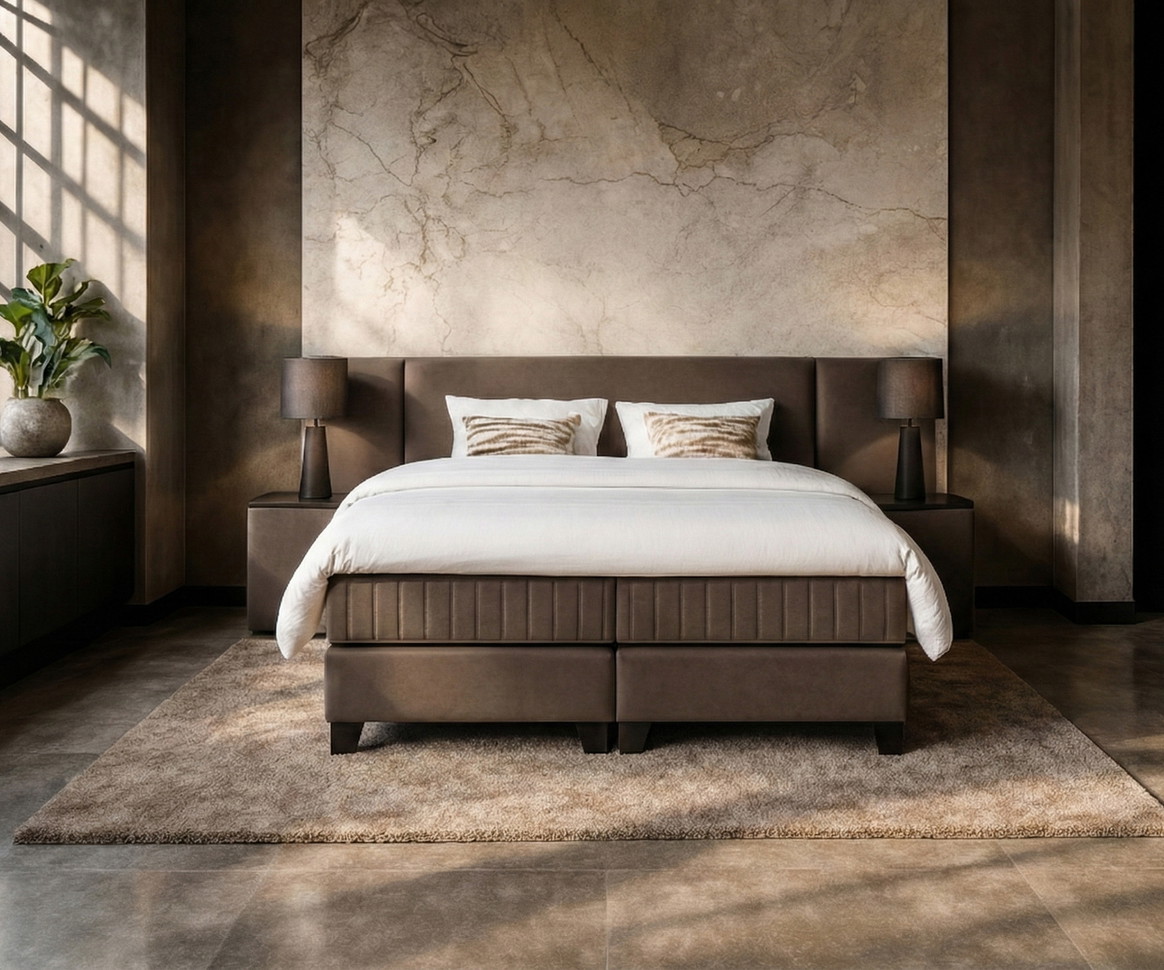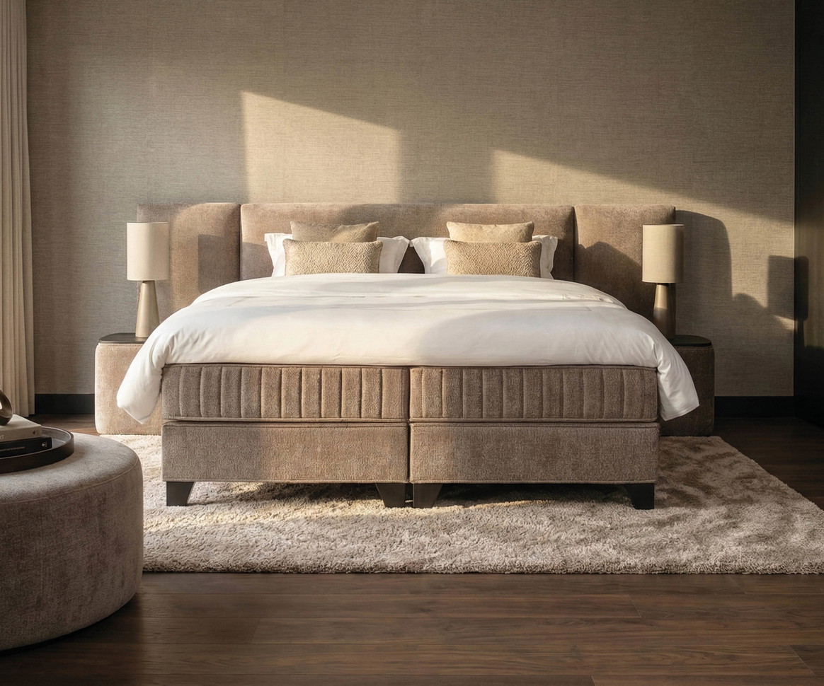 Deze set straalt rust en luxe uit. De warme stoffering en krachtige lijnen geven je slaapkamer direct een hotelgevoel. Tijdloos design dat moeiteloos past in een verfijnd interieur. Een set die comfort en uitstraling overtuigend samenbrengt.