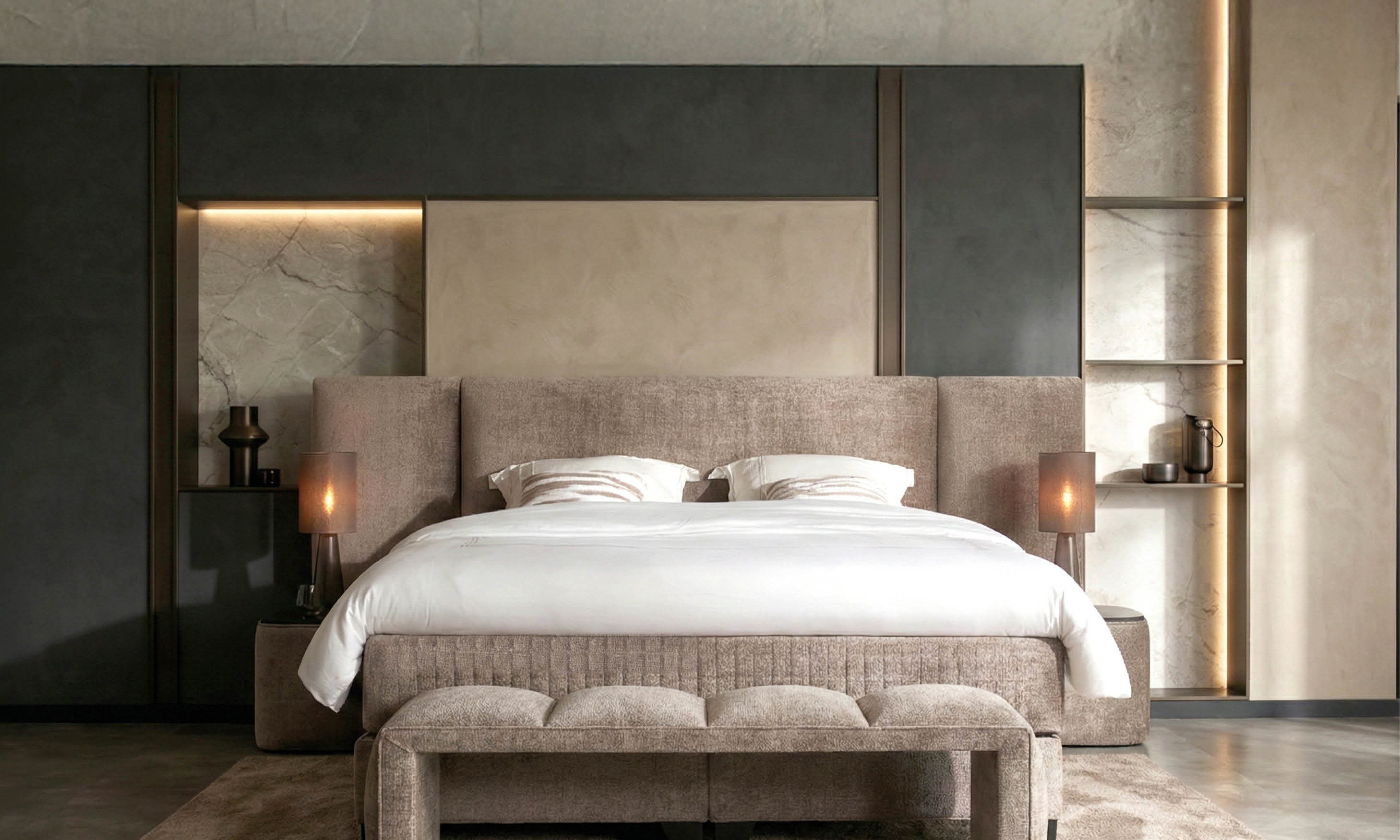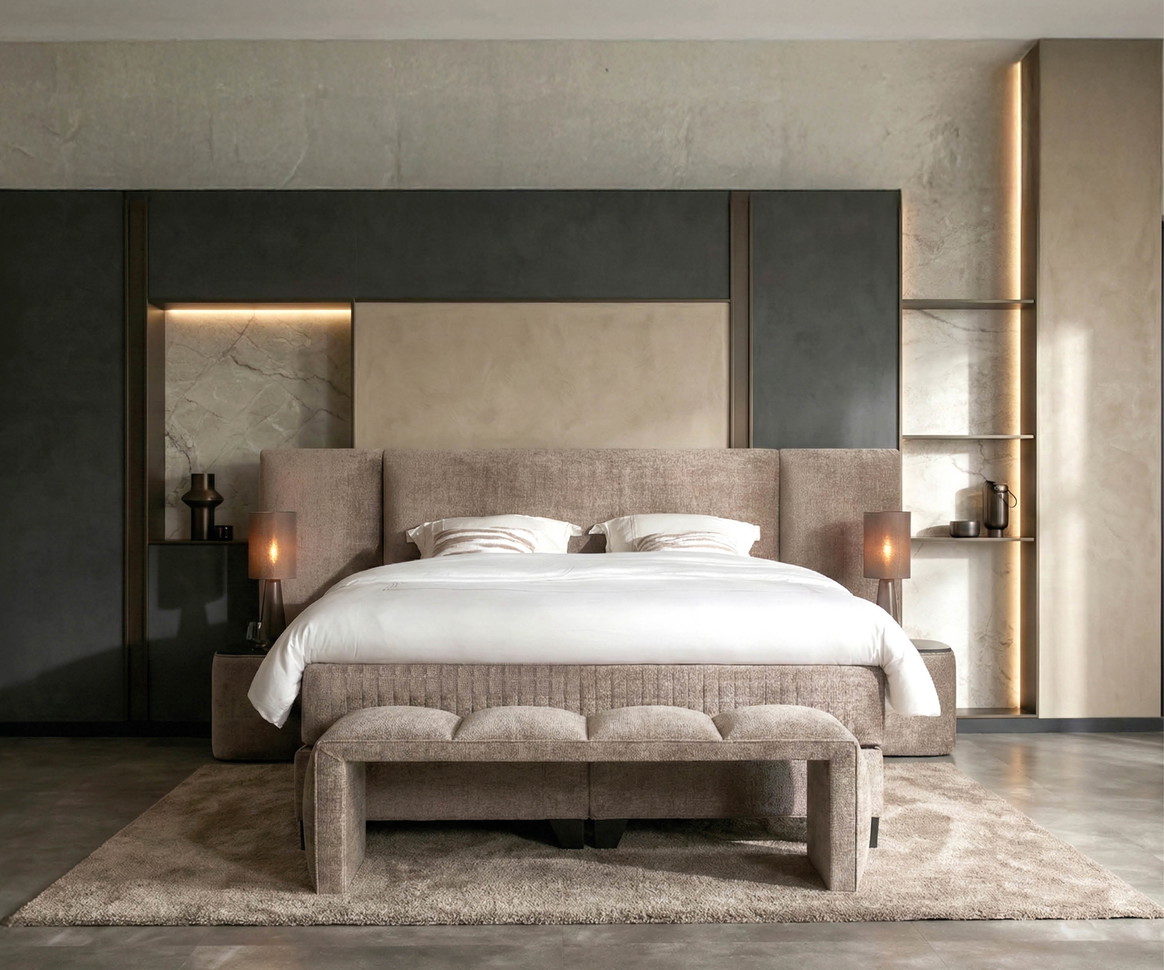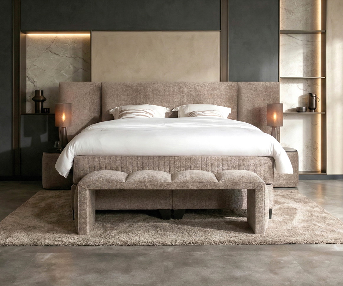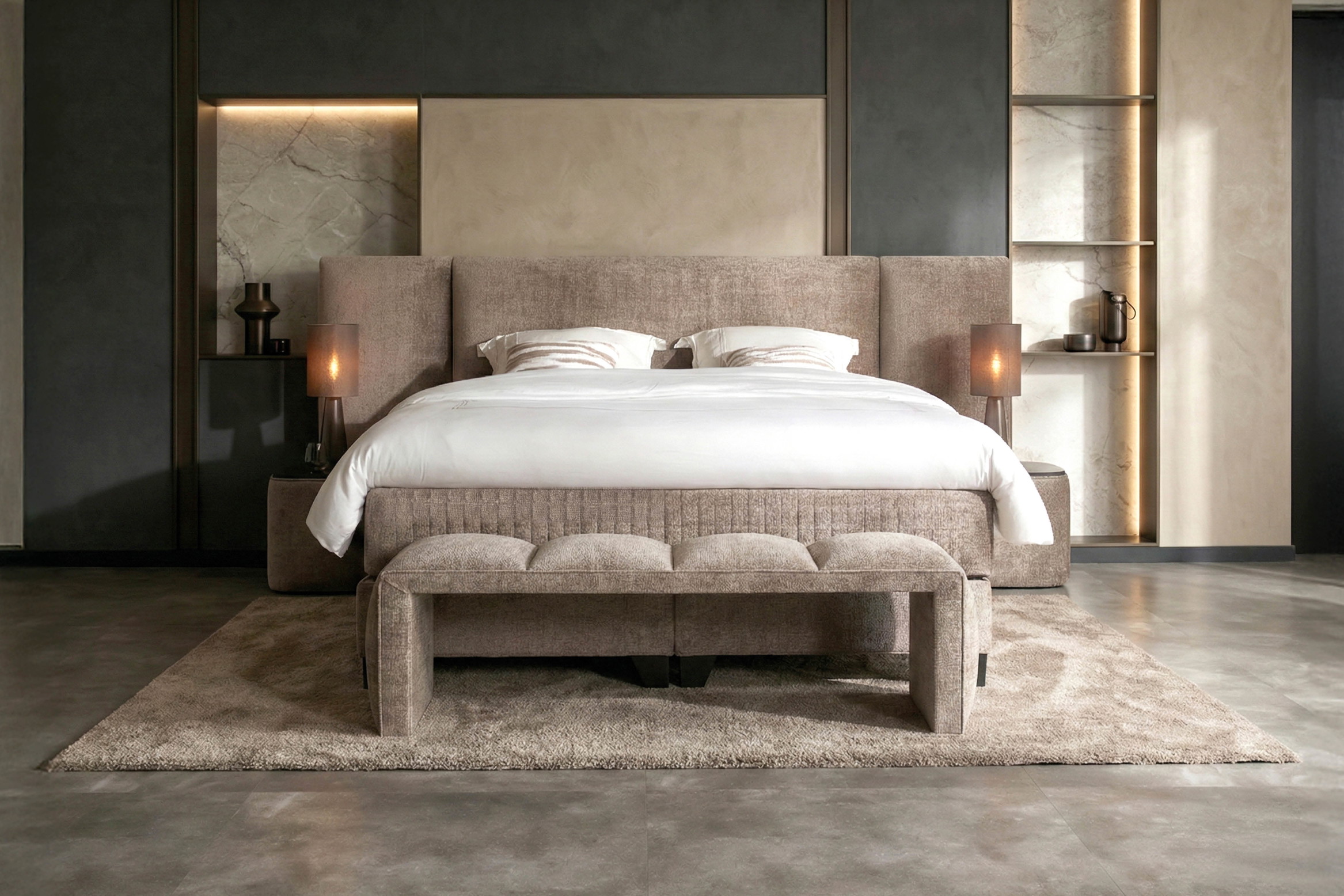 Deze set straalt rust en luxe uit. De warme stoffering en krachtige lijnen geven je slaapkamer direct een hotelgevoel. Tijdloos design dat moeiteloos past in een verfijnd interieur. Een set die comfort en uitstraling overtuigend samenbrengt.
