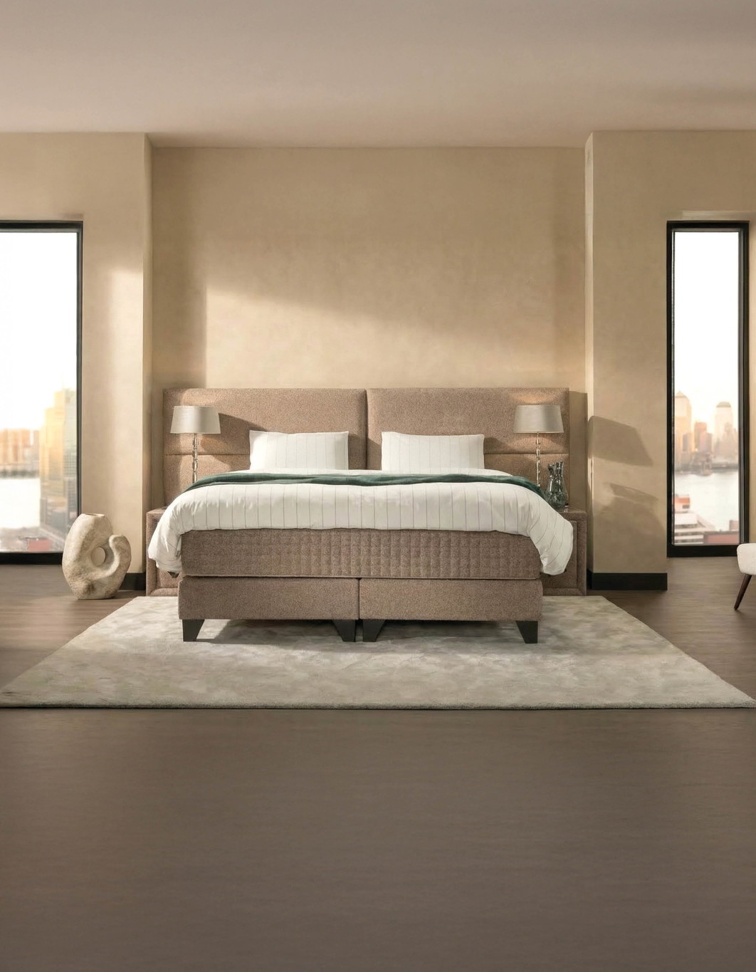 Het Hotelbed van het jaar is speciaal samengesteld en bevat extra upgrades: luxe stoffering in Boston Cement, het Royalty-matras en een verkoelende Gelfoam-topmatras. Deze set samengesteld op basis van inzichten uit de wereld van luxe hotellerie. Afgestemd op wat hotelgasten écht waarderen. Bekijk de pagina van dit model voor alle details: serta.nl/boxsprings/premium-series/hotelbed-van-het-jaar-magnifique