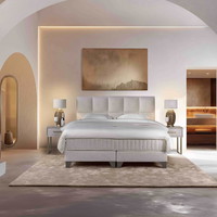 Moderne luxe in een krachtig design Met zijn strakke, gedefinieerde belijning in het hoofdbord straalt de Serta Hollywood pure klasse uit. De diepe, verticale stiknaden geven een indrukwekkend gevoel van hoogte en elegantie, terwijl de robuuste vormgeving zorgt voor een krachtig statement in elke slaapkamer. Dit model is ontworpen voor wie op zoek is naar een moderne uitstraling met een luxueuze hotelsfeer.