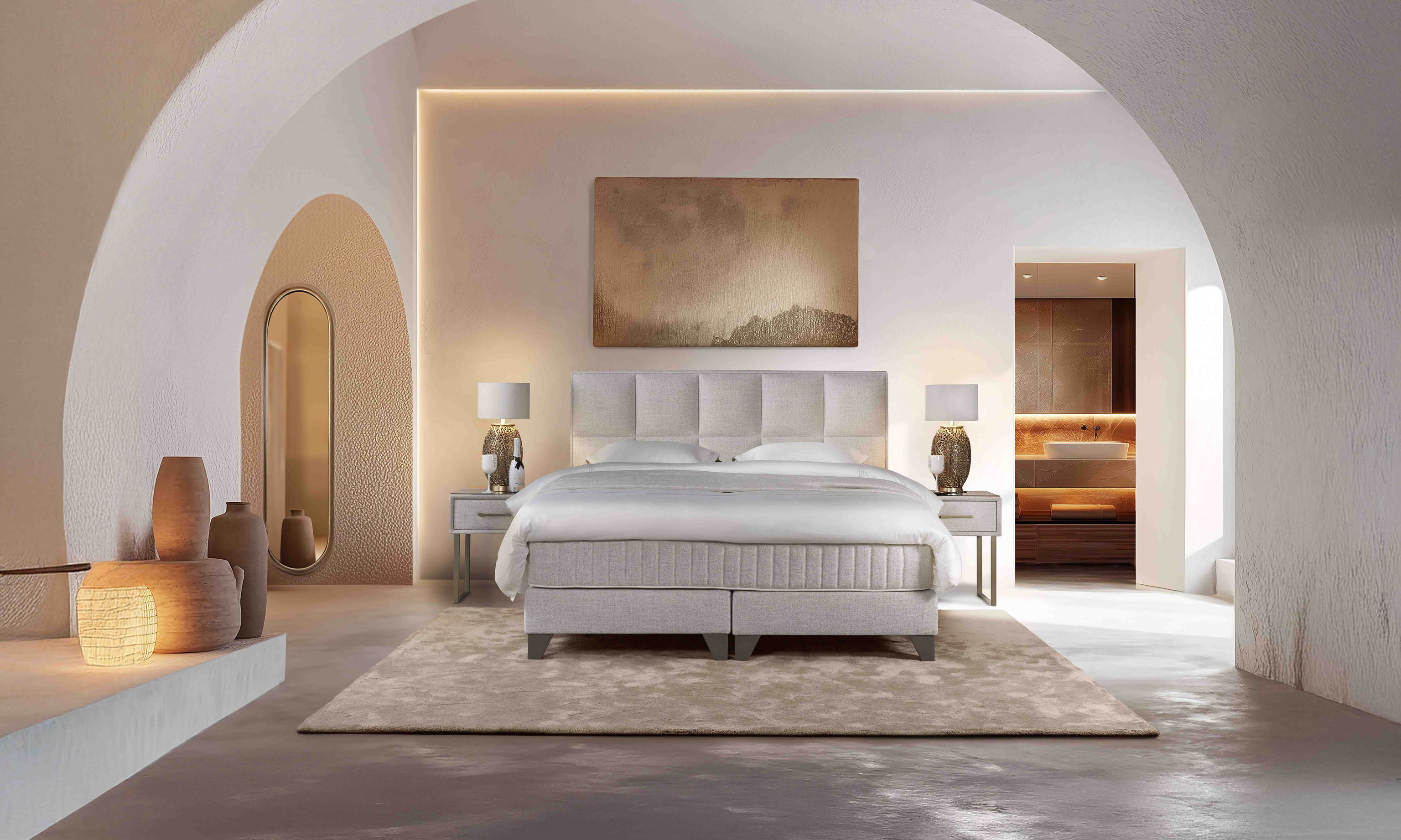 De slaapkamer heeft geen geheimen voor ons. Als een van de grootste merken ter wereld in matrassen en bosprings, zijn we gespecialiseerd in de inrichting van slaapkamers en suites.