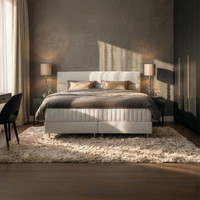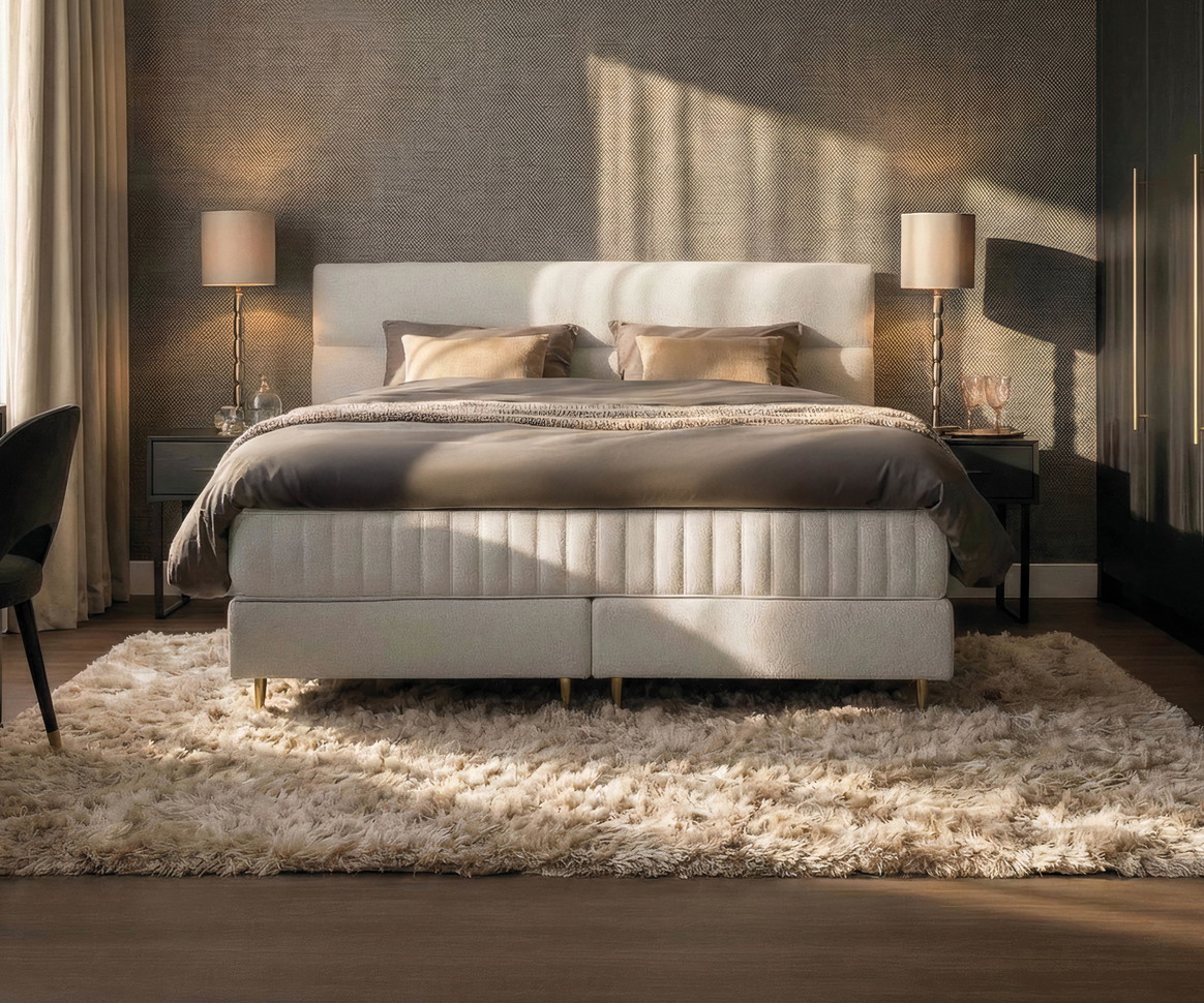Het Hotelbed van het jaar is speciaal samengesteld en bevat extra upgrades: luxe stoffering in Boston Cement, het Royalty-matras en een verkoelende Gelfoam-topmatras. Deze set samengesteld op basis van inzichten uit de wereld van luxe hotellerie. Afgestemd op wat hotelgasten écht waarderen. Bekijk de pagina van dit model voor alle details: serta.nl/boxsprings/premium-series/hotelbed-van-het-jaar-magnifique